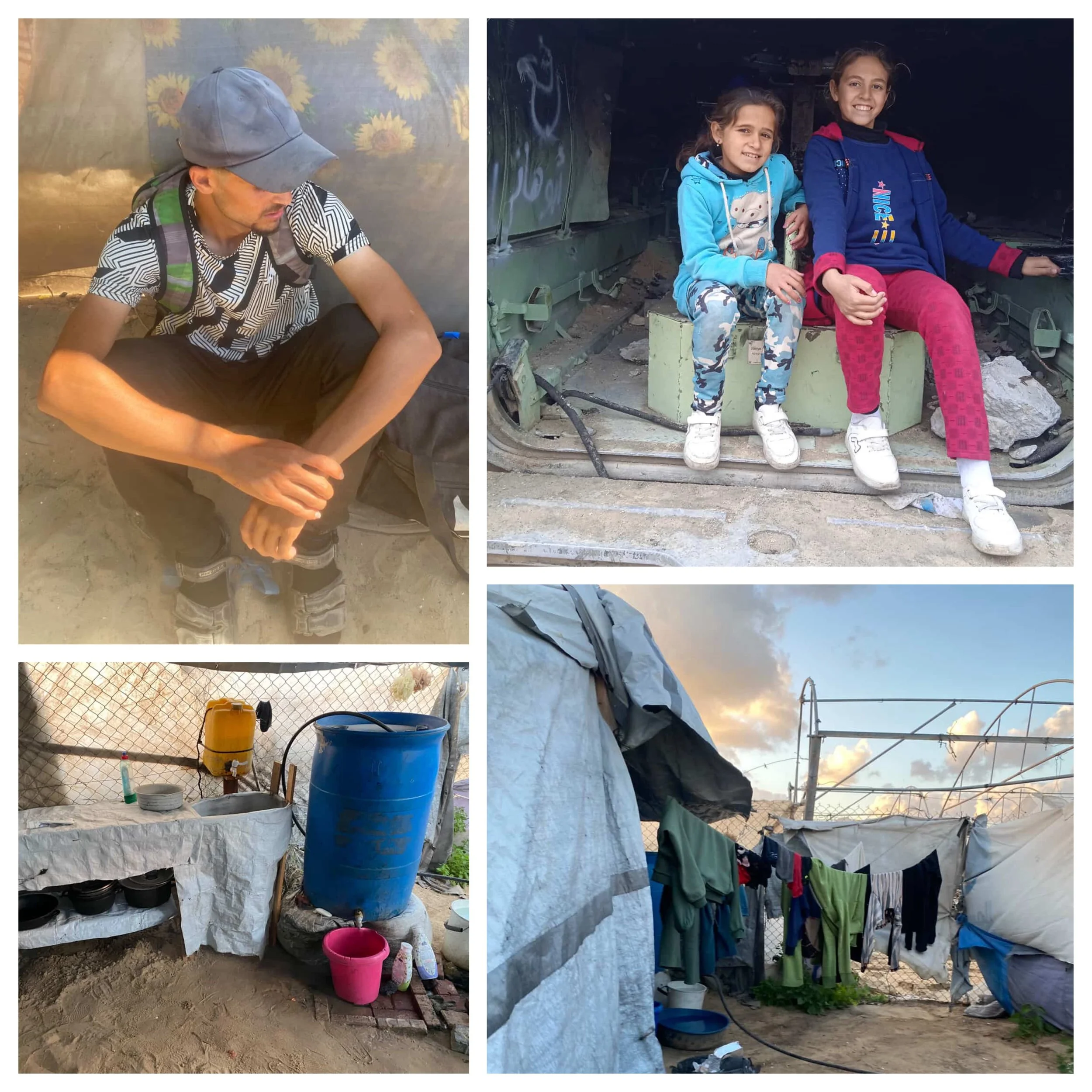 Right now, I am living in very difficult conditions after our home was completely destroyed. We have been displaced for some time, moving from place to place, and currently we are staying in a small, fragile tent that barely protects us from the weather.